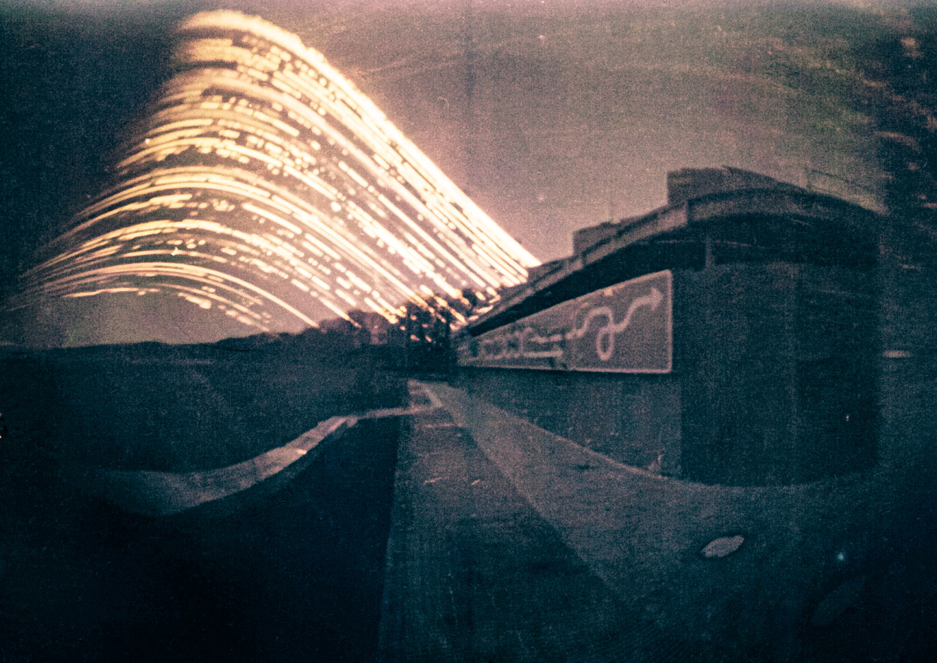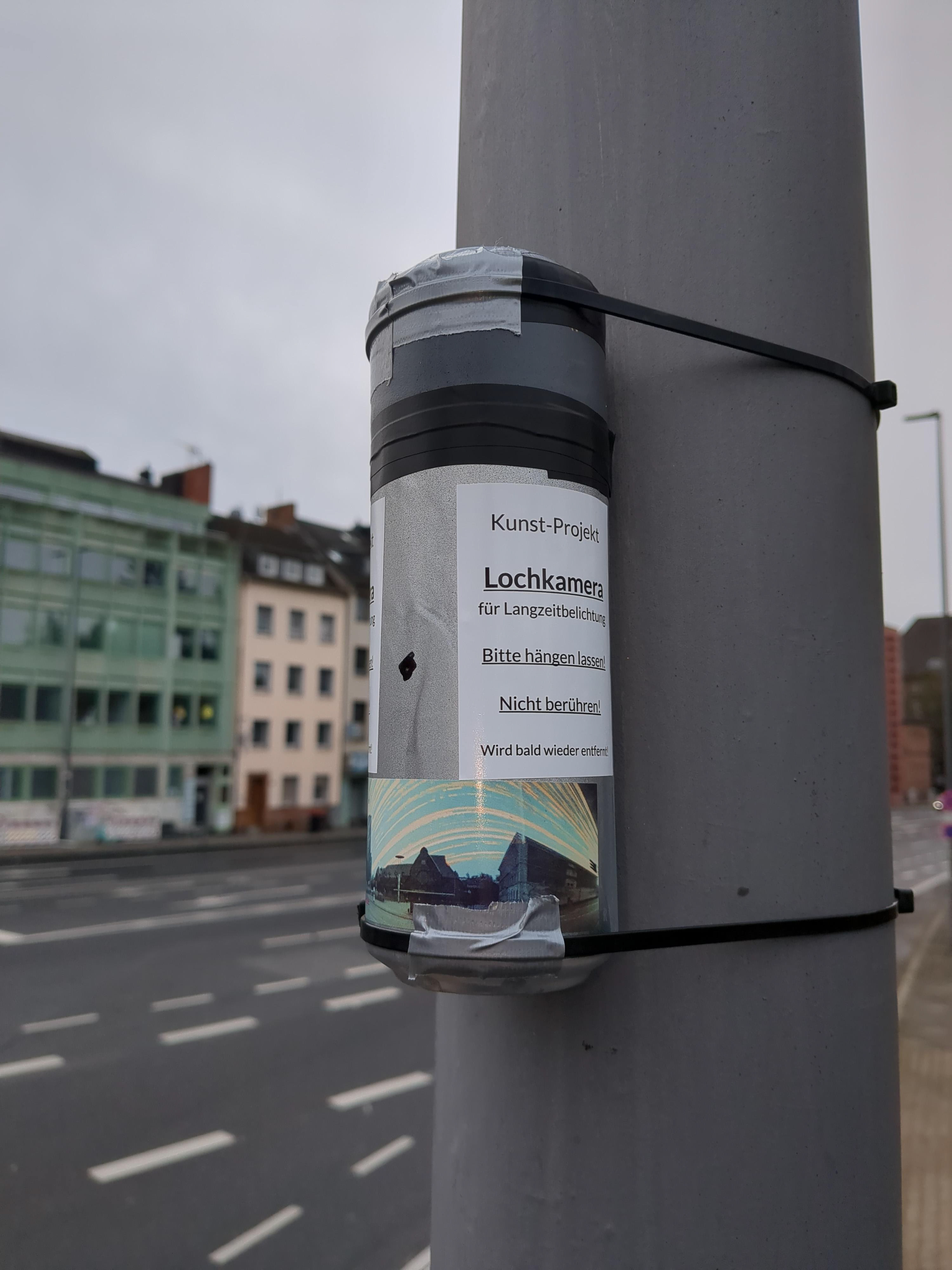 Unsere Arbeiten entstehen durch selbstgebaute Lochkameras, die mittels Langzeitbelichtung direkt auch Fotopapier das Unsichtbare sichtbar machen: die Bewegung der Sonne über den Himmel, eingefangen über Monate hinweg.